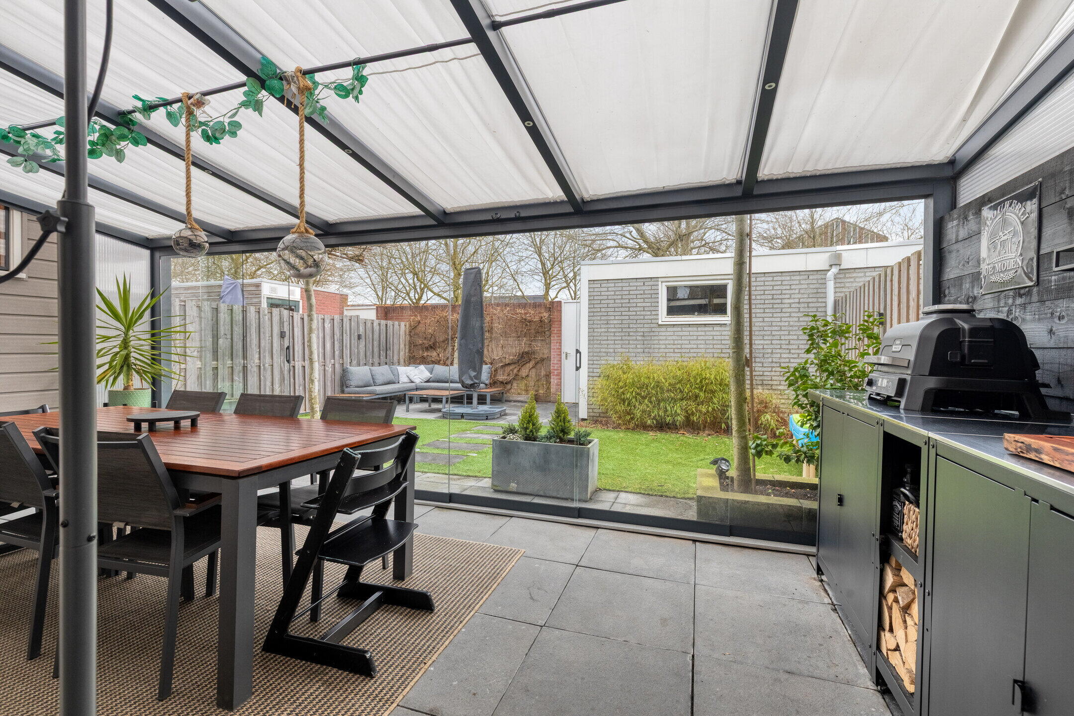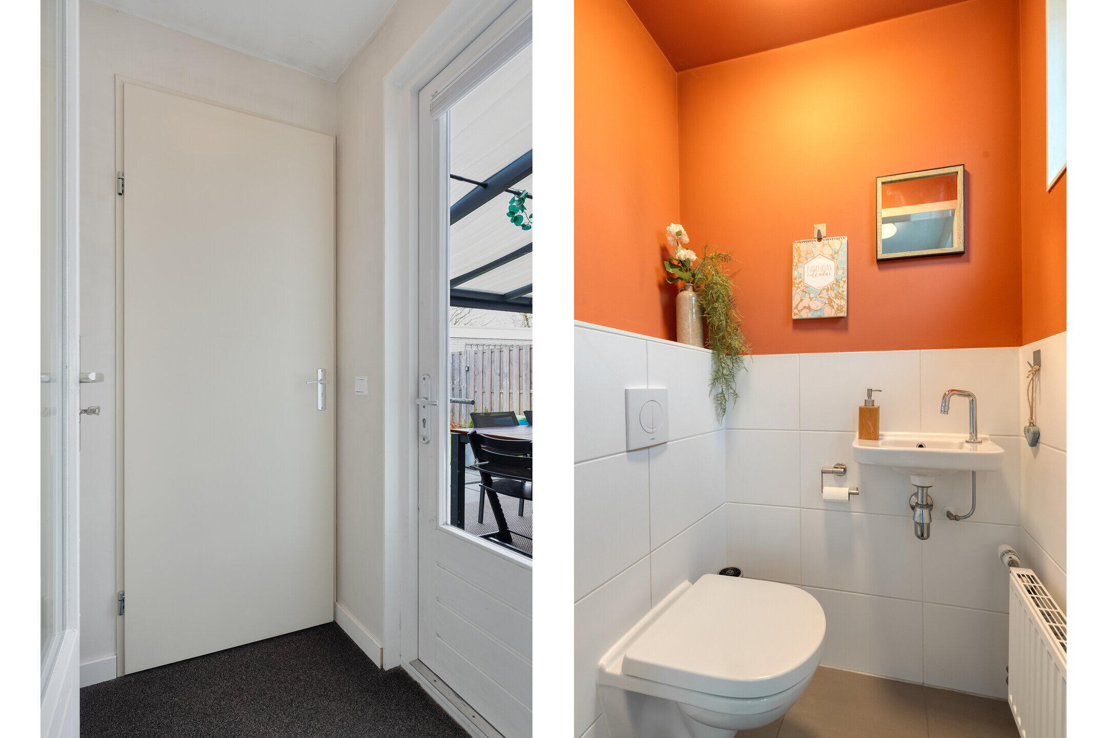 Aansluitend aan de keuken vindt u een hal die toegang biedt tot het separate toilet en de heerlijke serre. Deze serre is een waar juweeltje, met een compleet glazen pui die het mogelijk maakt om het hele jaar door van het uitzicht en de lichtinval te genieten. Of u nu in het vroege voorjaar of laat in het najaar bent, het is een perfecte plek om te ontspannen met een boek of om gezellig te dineren met vrienden.