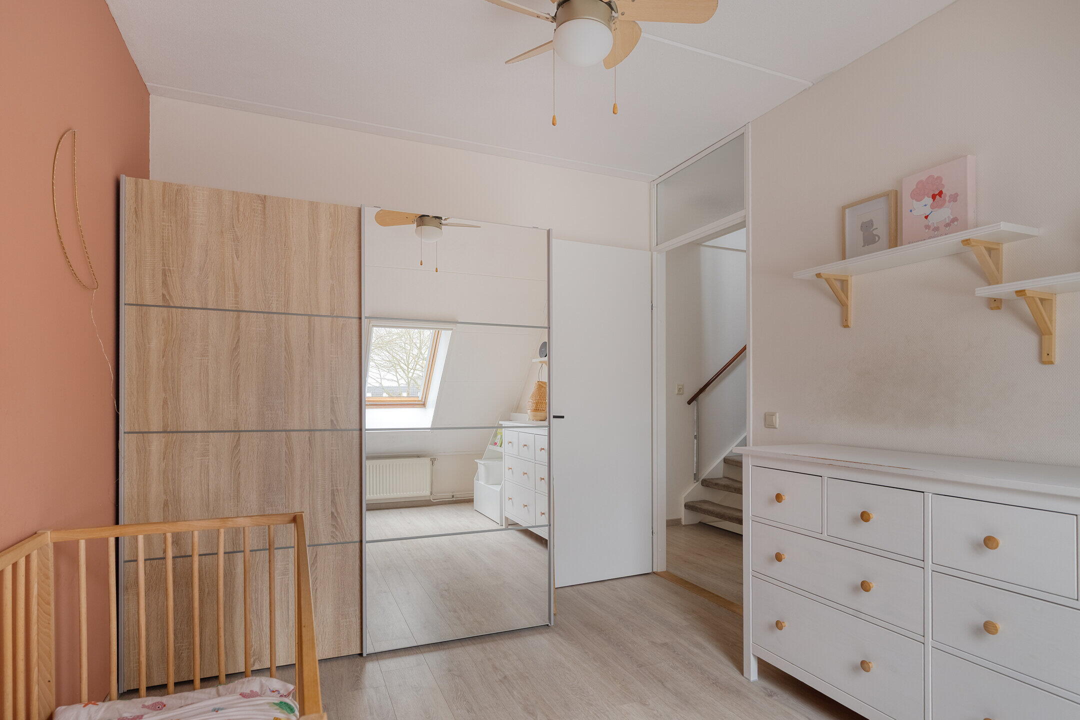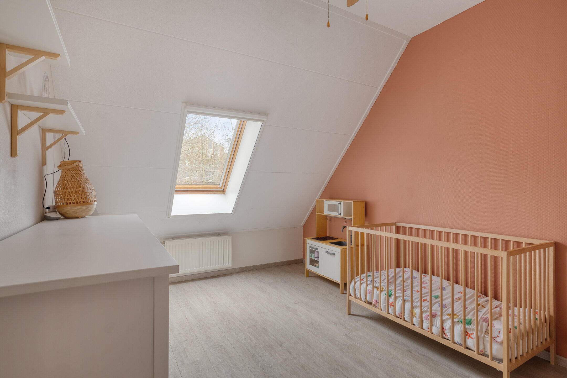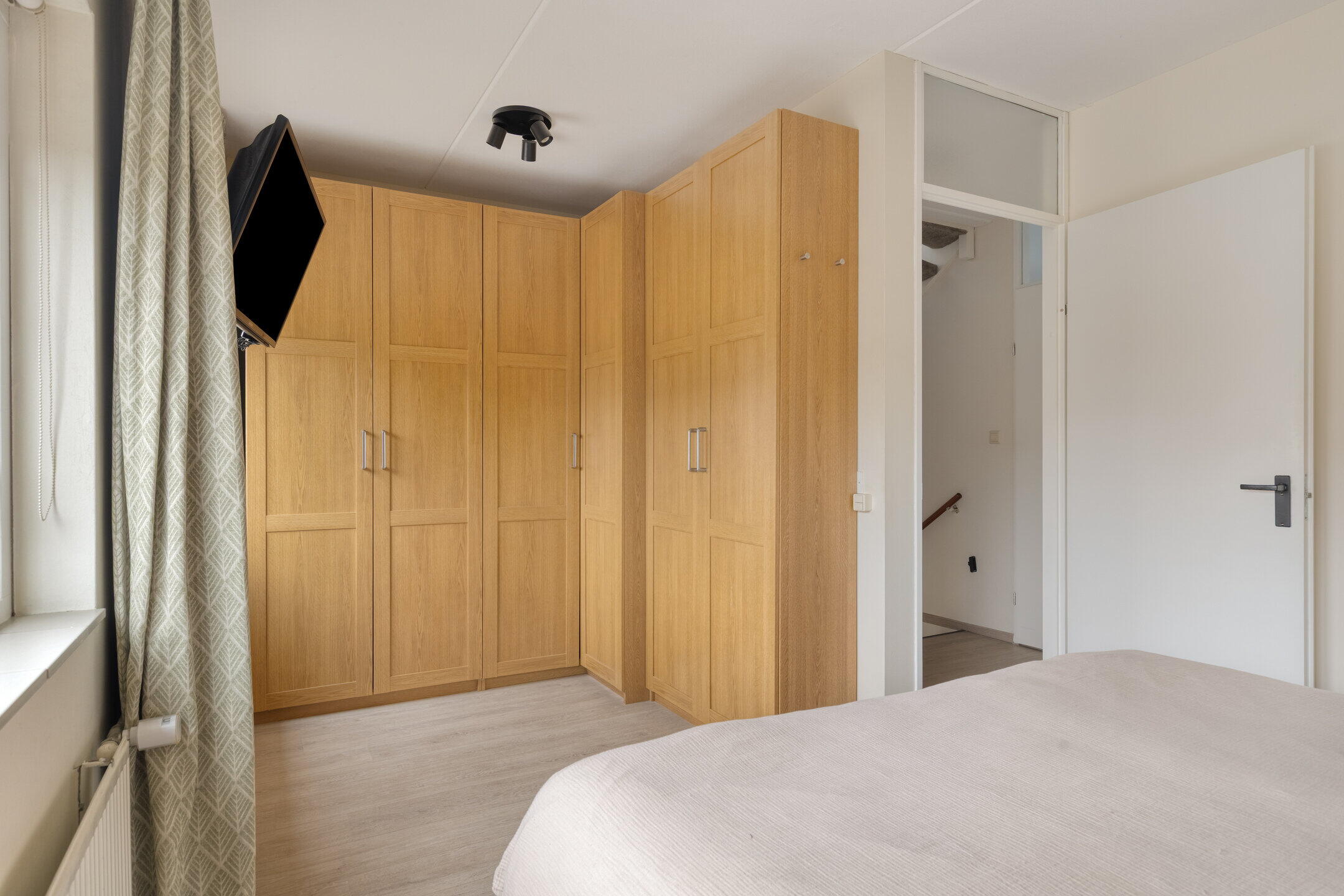 Op de eerste verdieping via de overloop komt u in twee ruime slaapkamers en de compleet ingerichte badkamer. De badkamer is praktisch ingedeeld en voorzien van een douche, een wastafel, een tweede toilet en een wasmachine-aansluiting. Dit maakt het dagelijkse leven een stuk makkelijker en aangenamer.