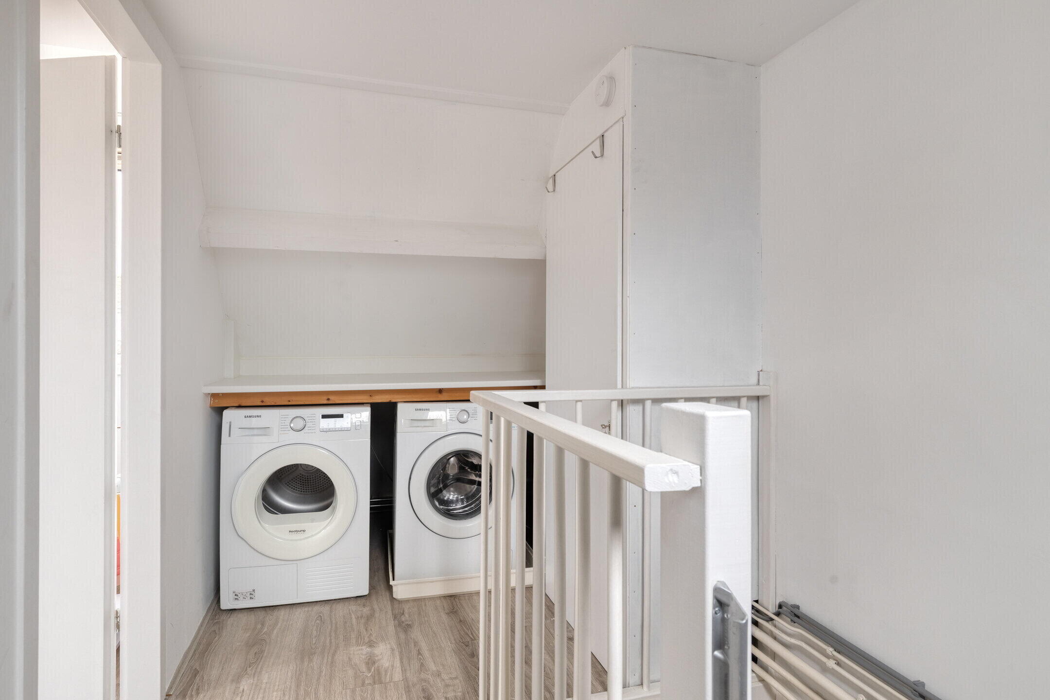 Overloop met de wasmachine-/droger aansluitingen. De tweede verdieping biedt toegang tot een derde ruime slaapkamer, ideaal voor een tiener, gasten of als thuiskantoor. Elk lid van het gezin kan hier zijn eigen plek vinden.