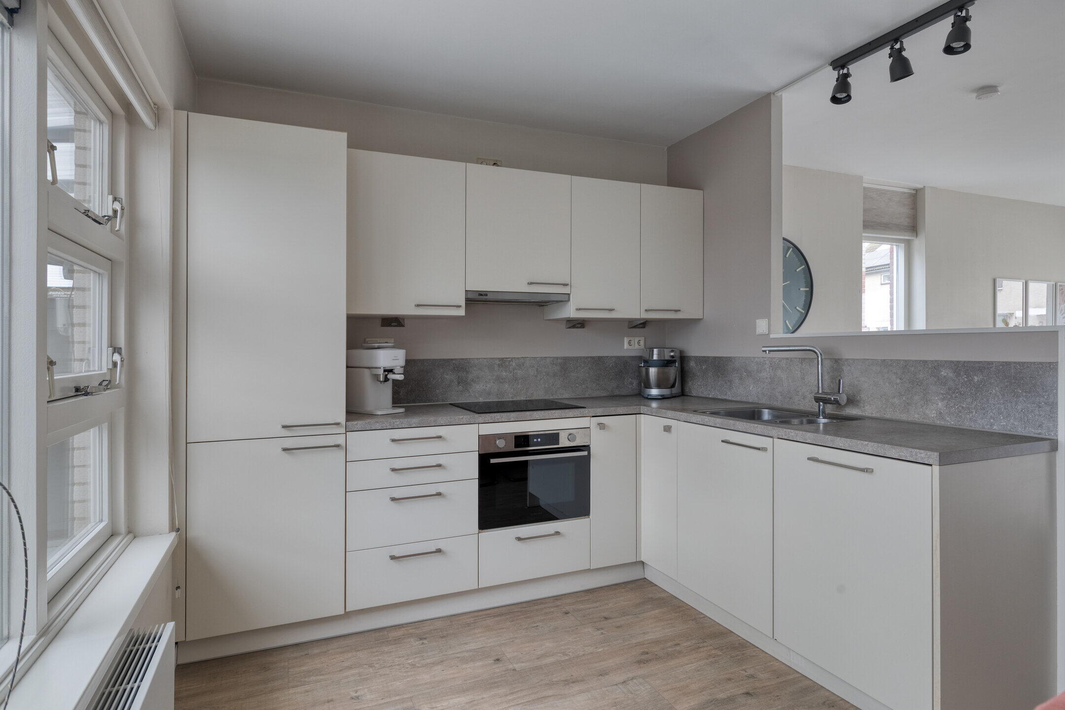 Bij binnenkomst in deze eengezinswoning wordt u verwelkomd door een lichte entree die toegang biedt tot de meterkast en de trapopgang naar de eerste verdieping. De ruime woonkamer is meteen een eyecatcher; het is een comfortabele ruimte met veel natuurlijk lichtinval, dank zij de grote raampartijen en de trapkast, die extra opbergruimte biedt. Via de woonkamer heeft u toegang tot de open keuken die van alle gemakken is voorzien. U zult al snel de inbouwapparatuur waarderen, waaronder een kookplaat, afzuigkap, combi-oven/magnetron, koel-vries combinatie en vaatwasser, wat het koken en entertainen erg aangenaam maakt.